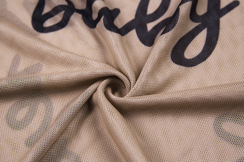 Summer Sexy Letter Print Transparent Mesh Bodysuits Long Sleeve See Through Baby Bodycon Rompers Women Jumpsuits