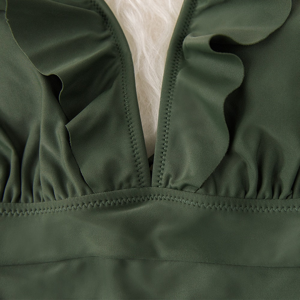 Sexy Women Solid Black Ruffled One Piece Swimsuit Lace up Monokini Beach Bathing Suits