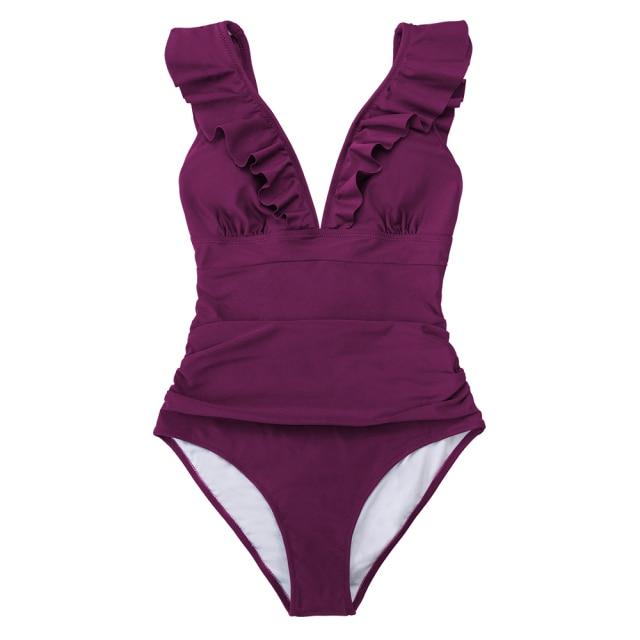 Solid Black Ruffled One piece Swimsuit Women Sexy Lace Up Monokini Swimwear New Girl Beach Bathing Suits,Body Suits,